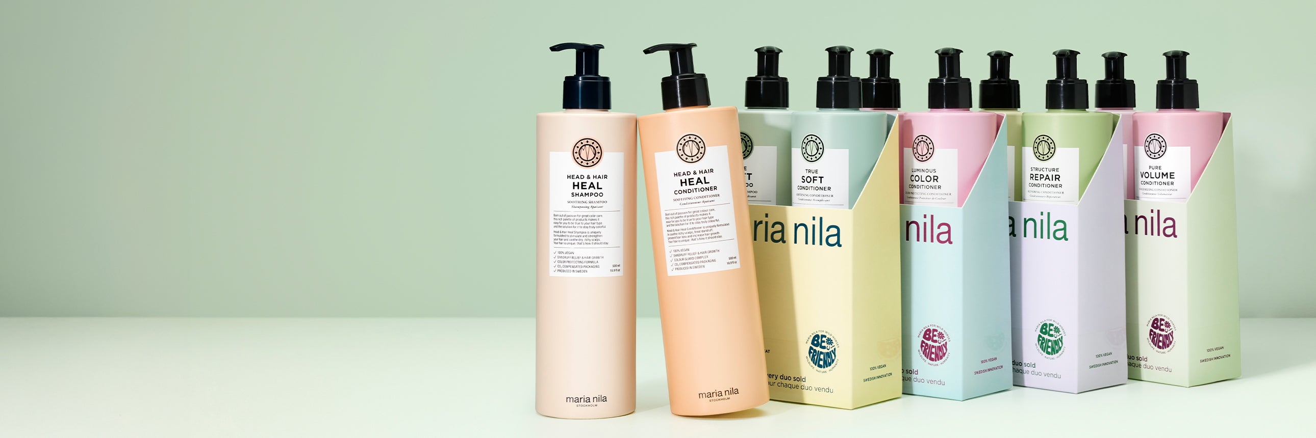 Maria Nila offers high-quality professional hair care products, all of which are vegan, sulphate, and paraben-free. The range includes everything from shampoos and conditioners in various hair care series to styling products and hair waxes. When you choose hair products from Maria Nila, you are being kind to both yourself and animals. If you have previously used hair products containing sulphates and parabens, you will most likely notice a big difference when you use Maria Nila's hair products.